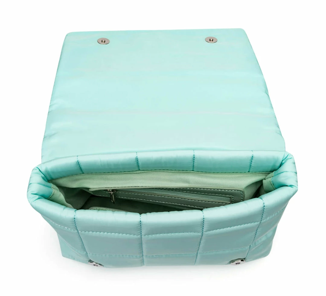 Introducing Alaska, a padded nylon shoulder bag with silver toned hardware in our modern Mint. Sleek yet effective, just switch to the adjustable nylon strap for the ultimate cross-body bag to take you from day-to-night. Will comfortably fit a phone, wallet and other daily essentials with ease.