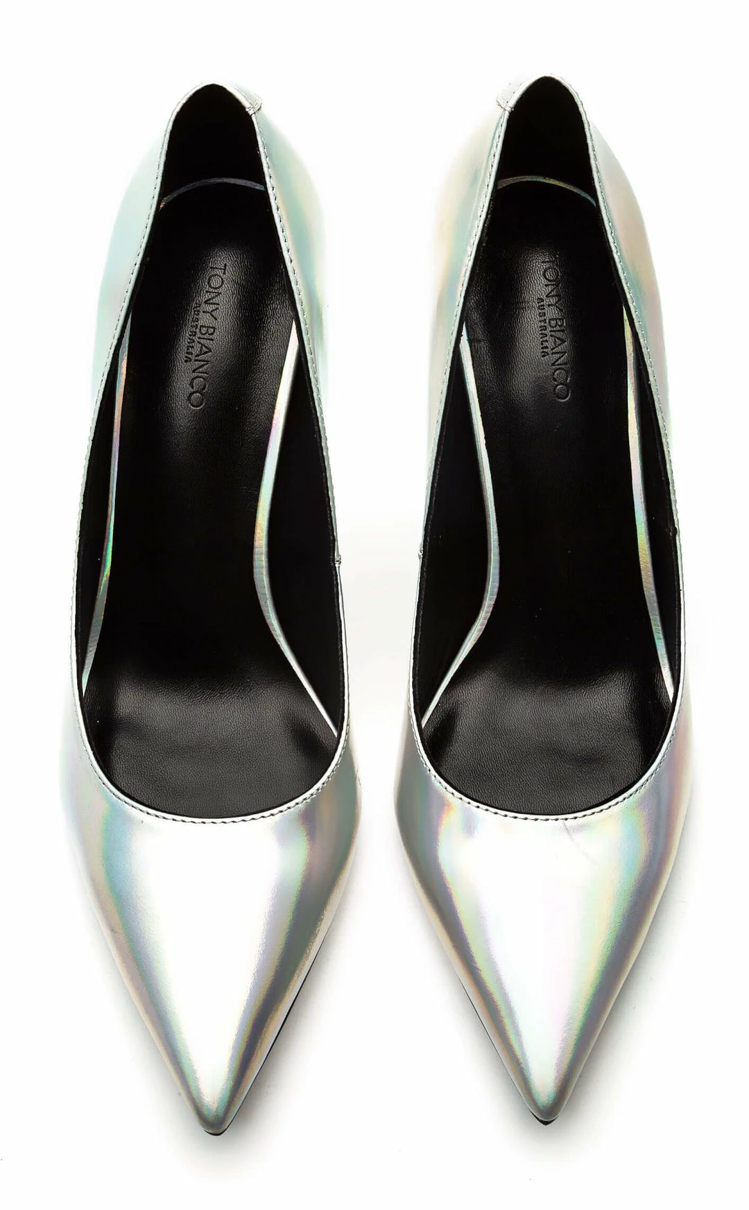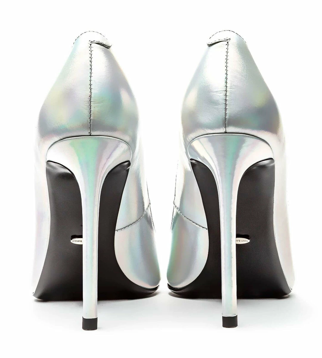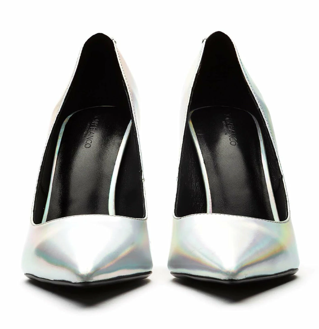 High-shine silver leather is a must this season. Perfect for every occasion, the Anja silver pointed heels capture the elegance of a classic pump, with a scooped upper to create a flattering silhouette and stiletto heel, she is a must have for your shoe-drobe collection.