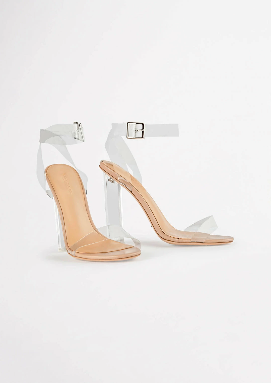 Introducing the oh-so-stunning Kiki heels. Boasting a transparent vinylite ankle strap and upper, paired with an iconic acrylic heel, be prepared to take your look to the next level with this modern design.