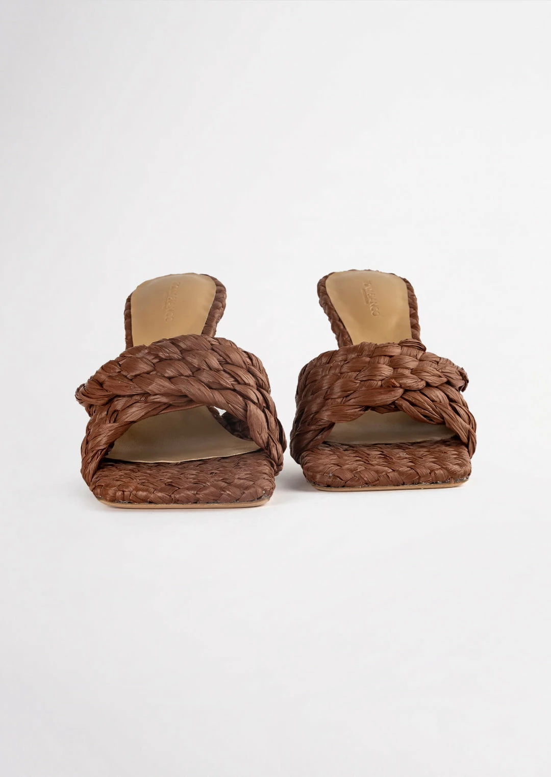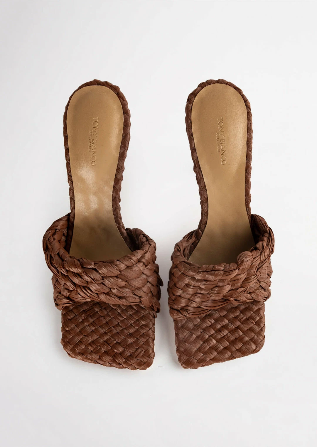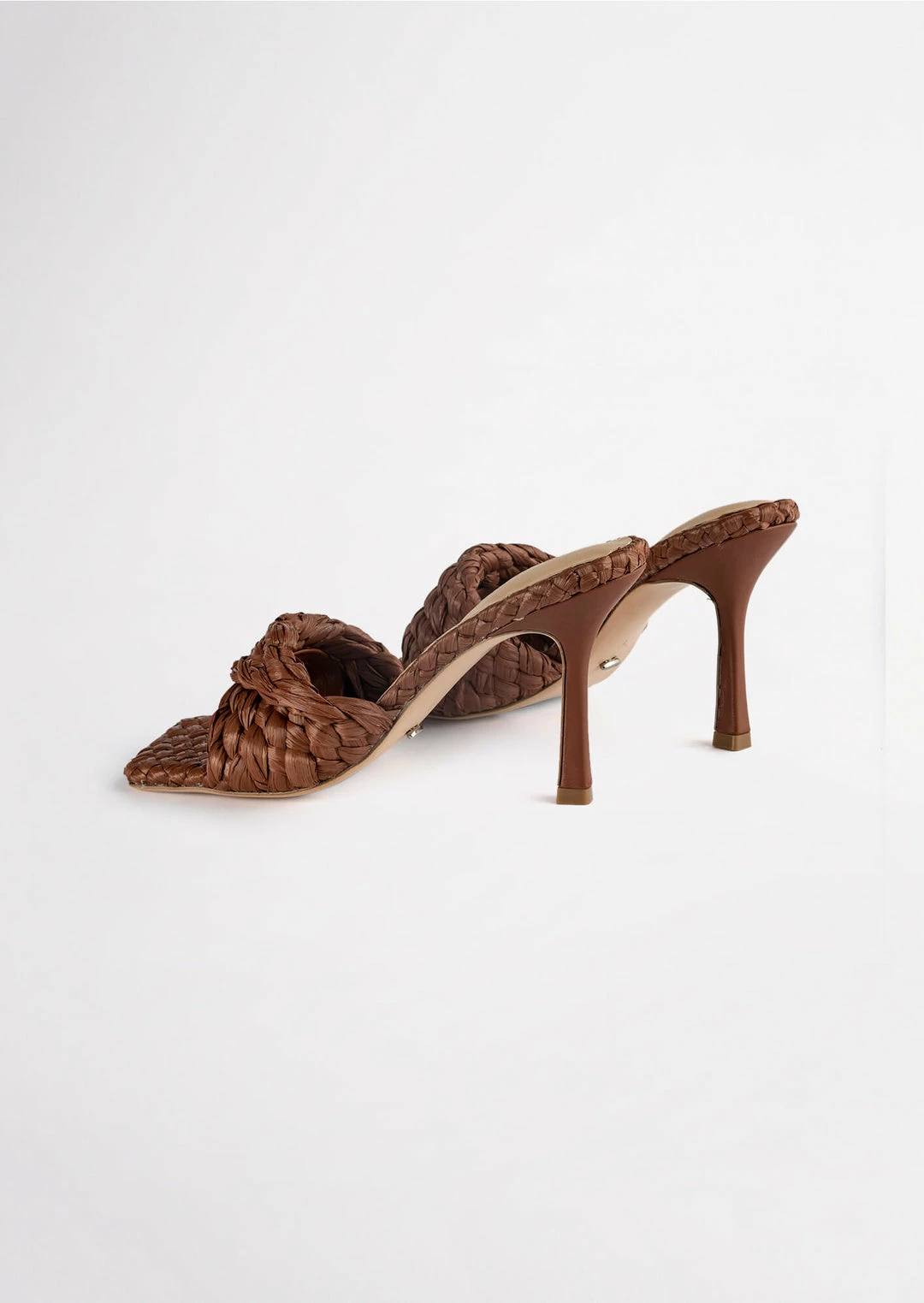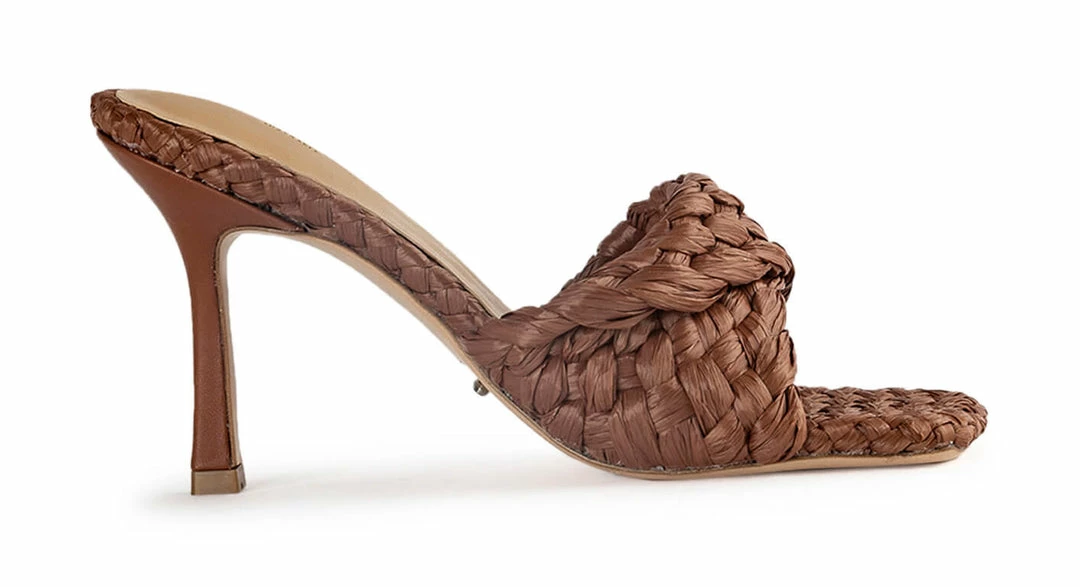 Make a statement next time you go out in the Lourdes mule in a rich brown colour. Featuring a woven raffia strap and finished on a 9.5cm heel, their design makes them perfect for day-time dressy events.
