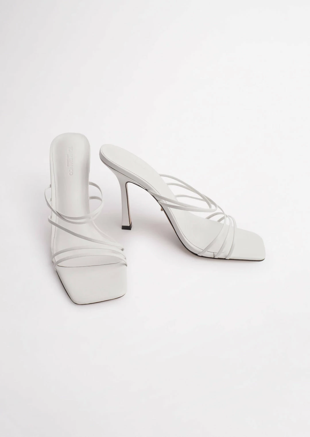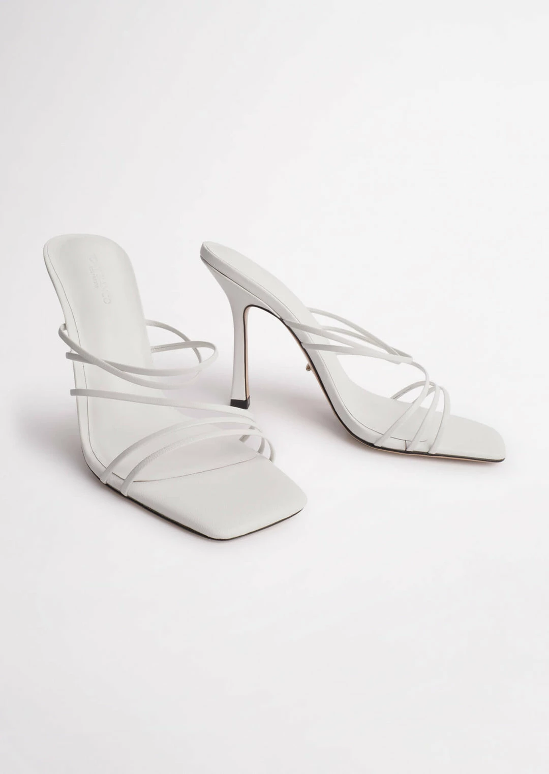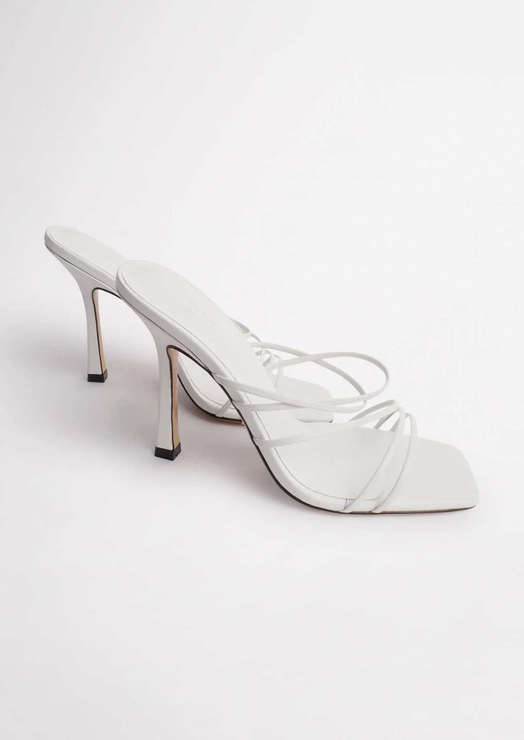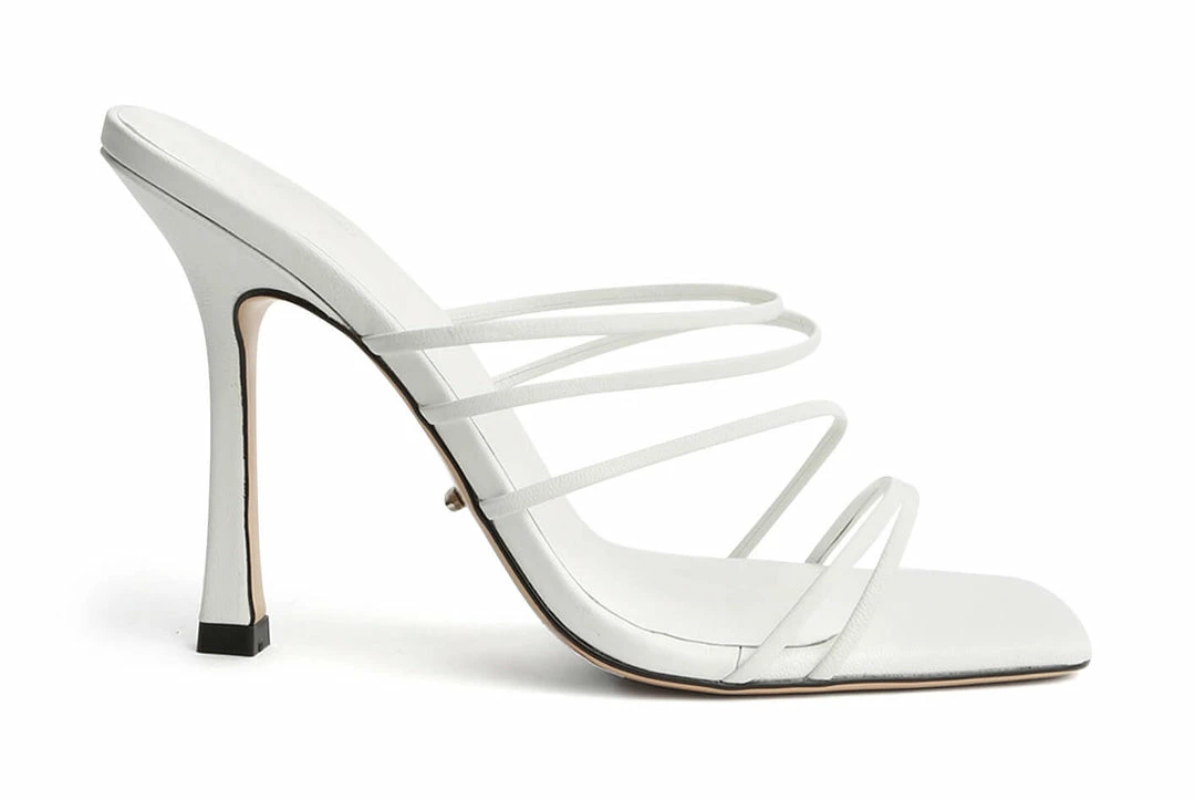 Dress to impress with the Foxie mules. Designed with multiple slender cross-foot straps, this slip-on style features a striking squared toe-shape, a comfortably padded foot-bed and is set atop a 10.5cm stiletto heel.