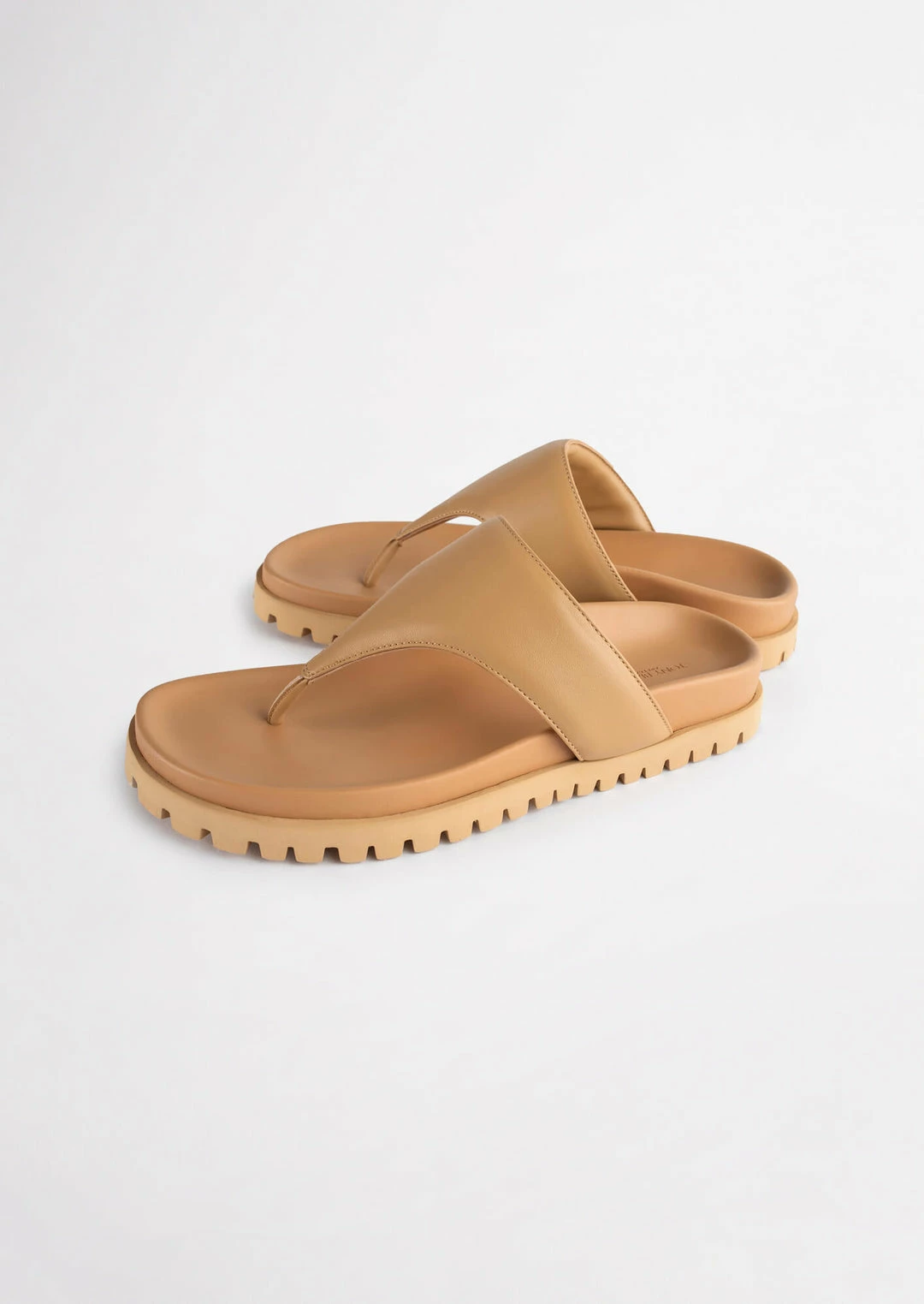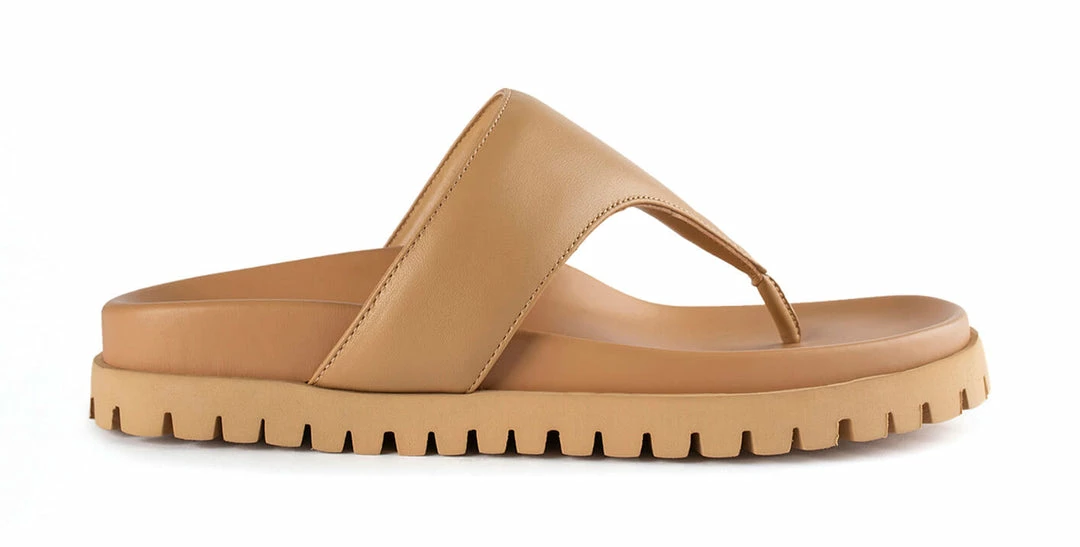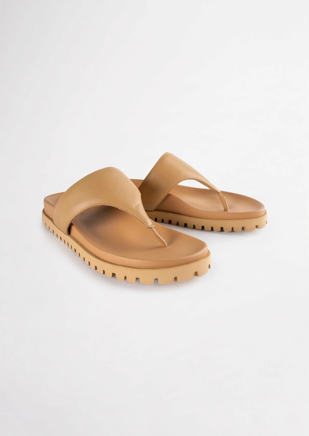 Slide into straight up style and comfort with our Brenna slides. A thong-style flat sandal, this design features a buttery soft-touch leather upper, a chunky rubber sole with in-built cushioning and is finished with an open rounded toe-shape. Pair effortlessly with almost anything for a casual look.