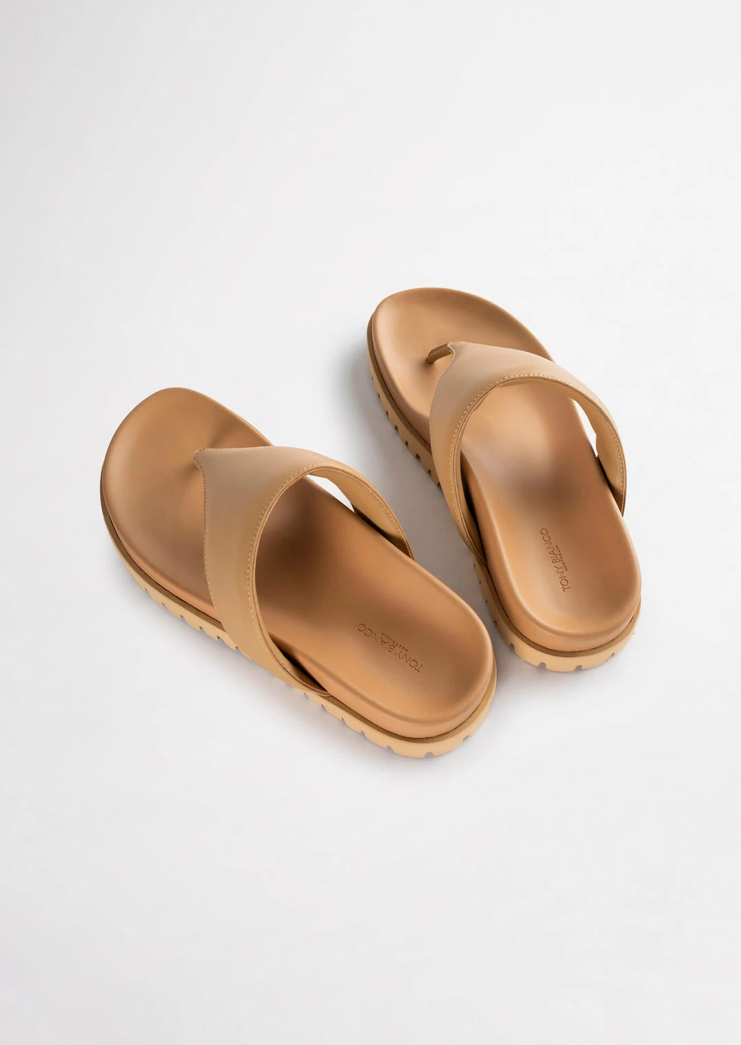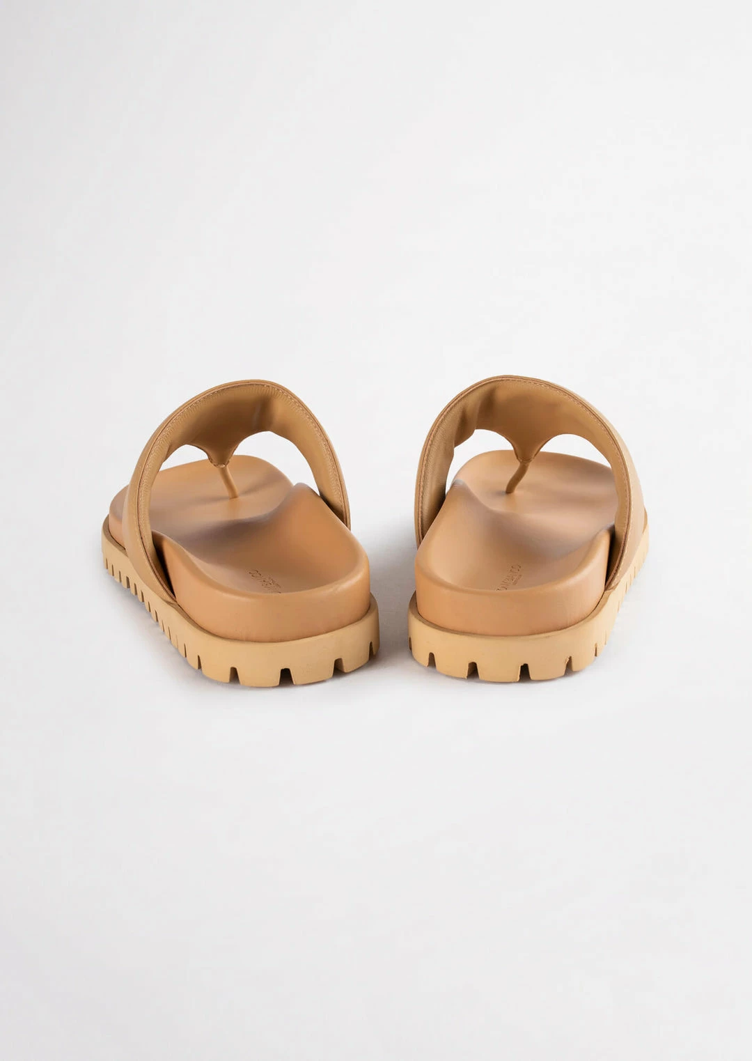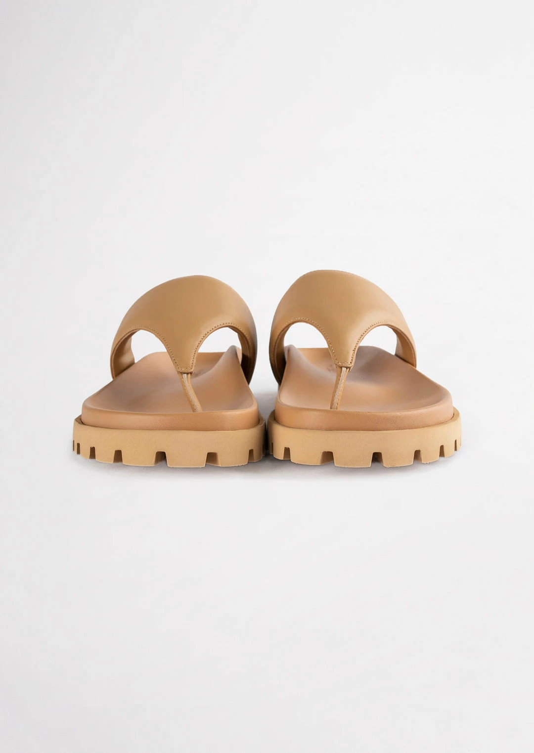 Slide into straight up style and comfort with our Brenna slides. A thong-style flat sandal, this design features a buttery soft-touch leather upper, a chunky rubber sole with in-built cushioning and is finished with an open rounded toe-shape. Pair effortlessly with almost anything for a casual look.