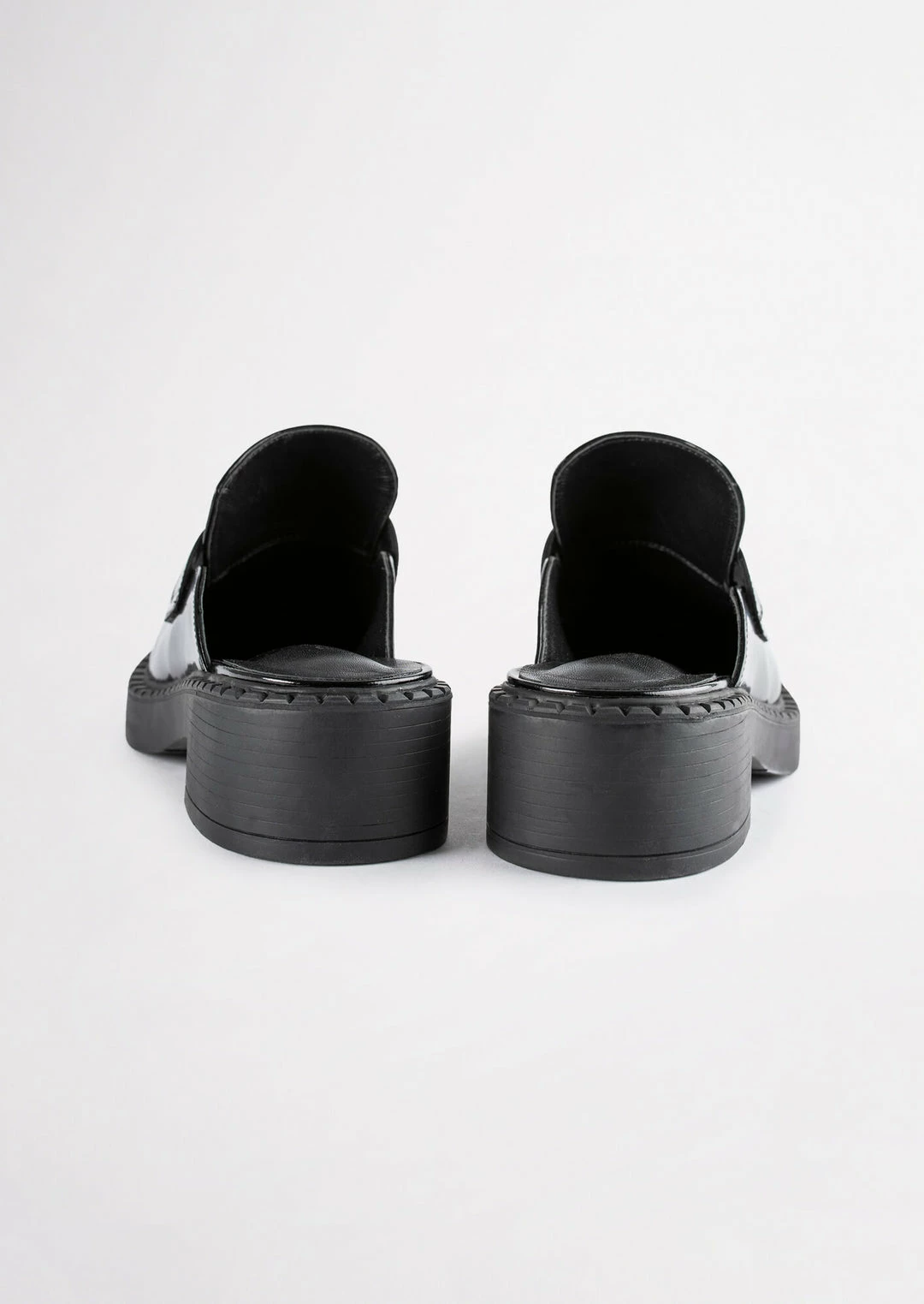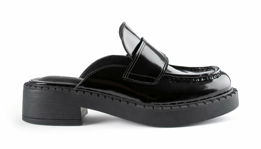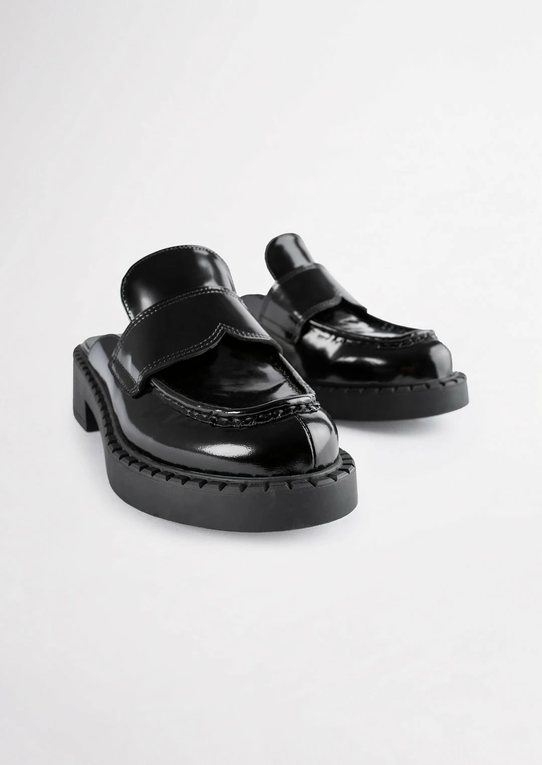 Elevate your nine to five look with the Chime slide. Designed with a comfortable almond shaped toe, a chunky exposed sole, subtle stitch detailing and a standout shiny leather exterior. Finished with an all new leather lining and a lightweight rubber sole.