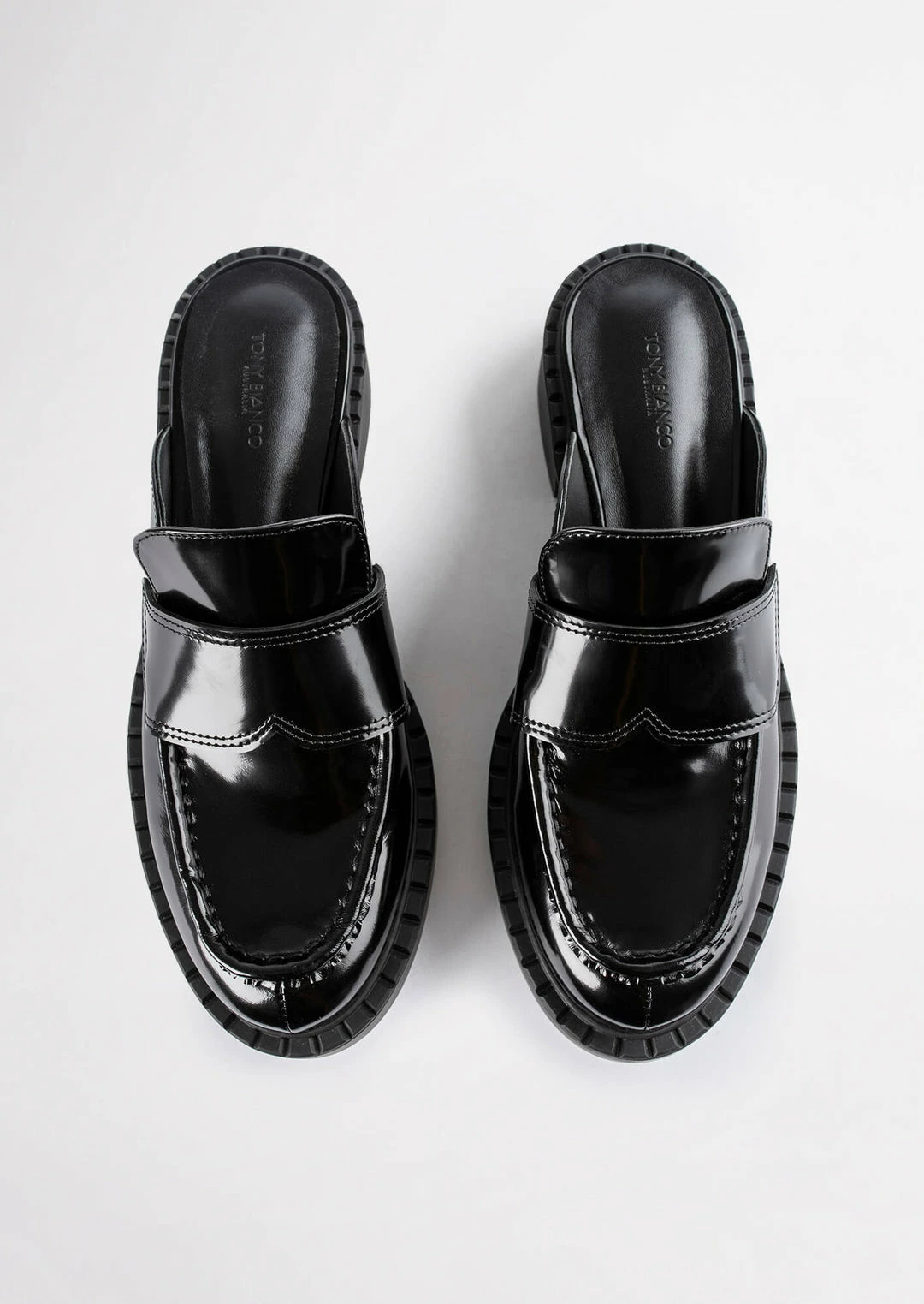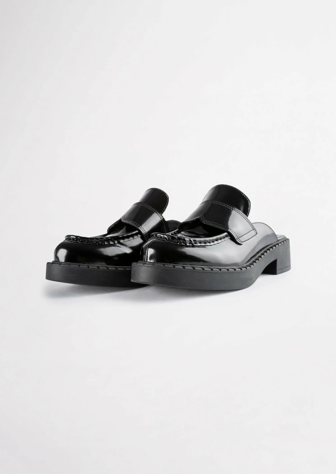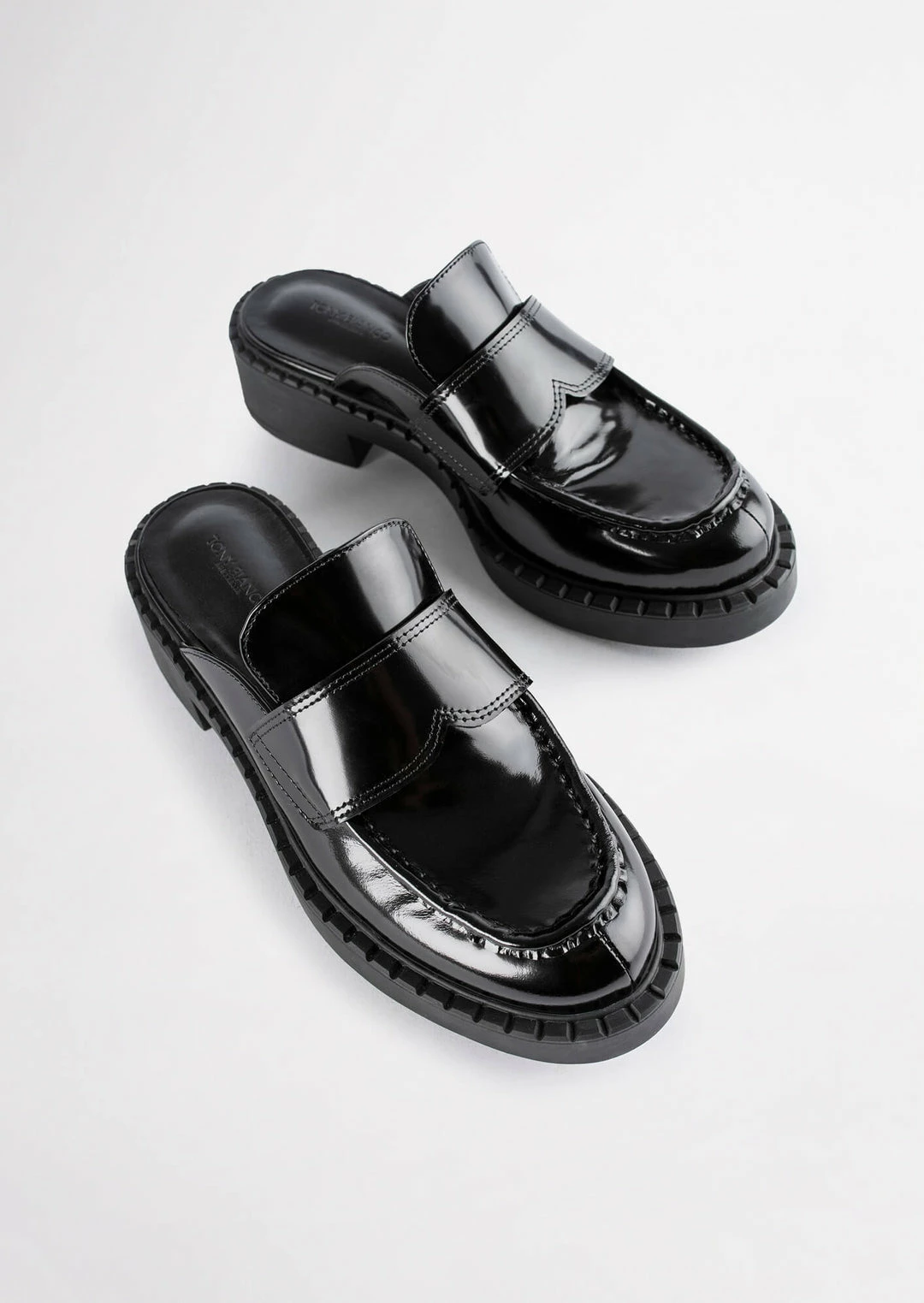 Elevate your nine to five look with the Chime slide. Designed with a comfortable almond shaped toe, a chunky exposed sole, subtle stitch detailing and a standout shiny leather exterior. Finished with an all new leather lining and a lightweight rubber sole.