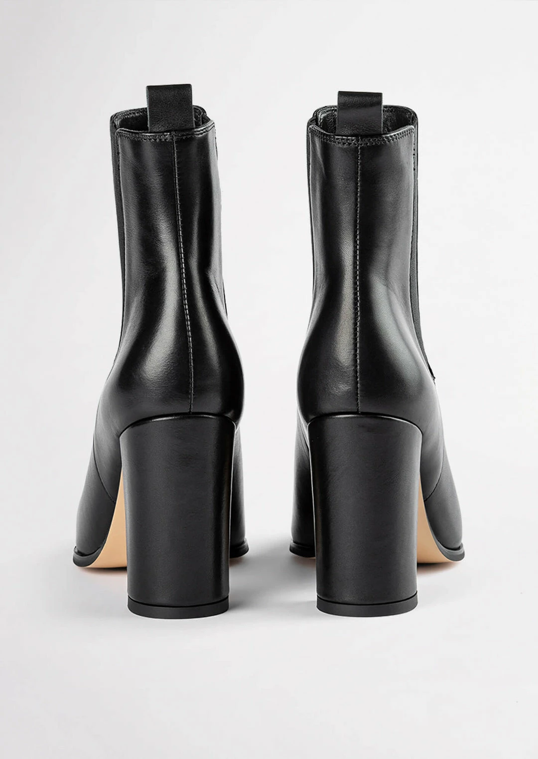Sleek and en pointe, the Easton black leather ankle boot is ready to be yours. Showcasing a minimalist design with a long pointed toe shape, a fitted upper, twin elasticised panels and a leather pull tab to the centre back for an easy pull-on-and-go wear. Finished with a quality leather upper, lining and cushioned sole, you won’t ever want to take these babies off.