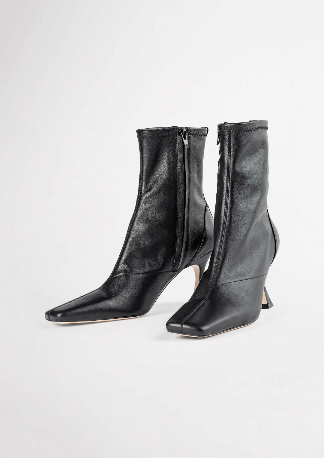 Don’t miss out on our Fomo ankle boot. Set to impress, this pared back design showcases an extended square toe-shape with a fitted upper, subtle stitch detailing and an inner zip to easily slip on and go. Finished with a statement hourglass shaped heel for a unique point of difference.