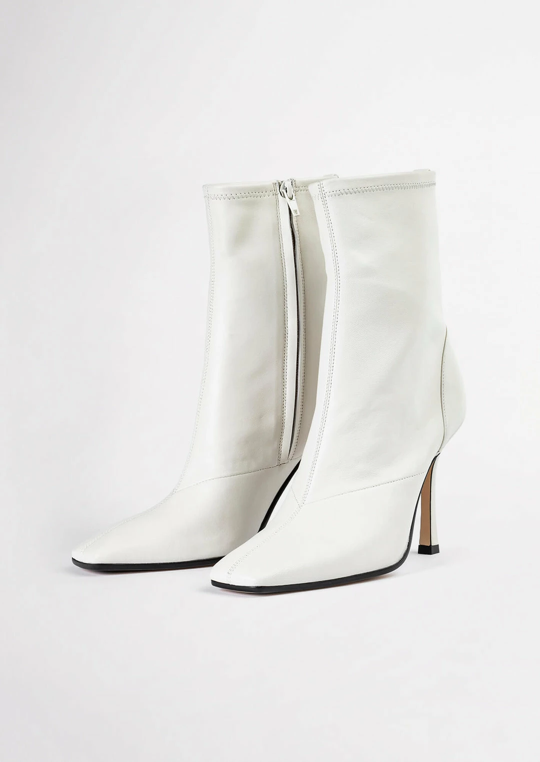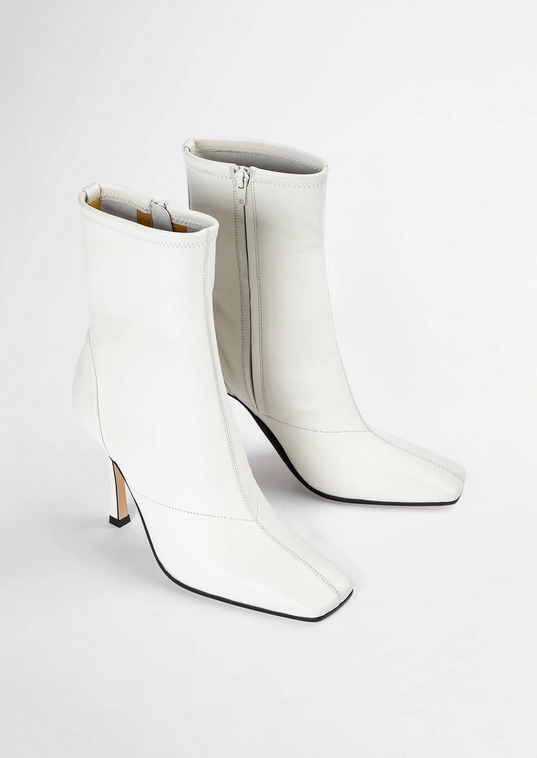 Break away from black this season with the Halsey in dove jewel – boasting a cool off-white exterior, this ankle boot features an on-trend squared toe shape, a soft genuine leather and a matching rear zip to the ankle for an easy, slip-on-and-go wear. Pair effortlessly with cropped denim jeans.