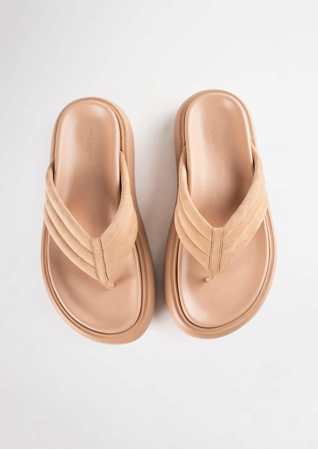 Still vibing thong sandals? Same. Introducing the Jacana slide in beige. She’s your new favourite style that’s been upgraded with a stitched suede leather thong on top of a soft padded foot bed. If you haven’t embraced this trend yet, now is the perfect time.