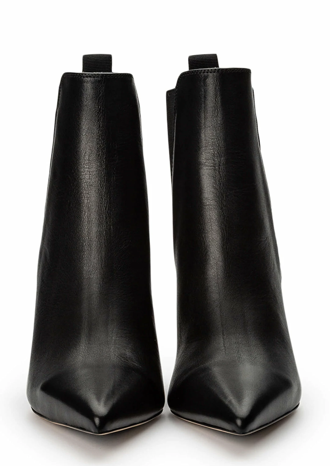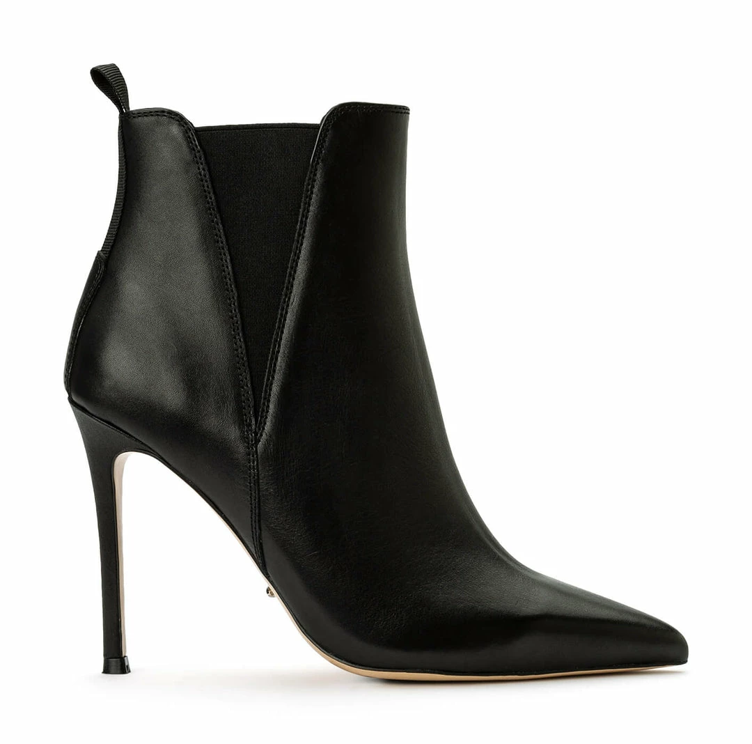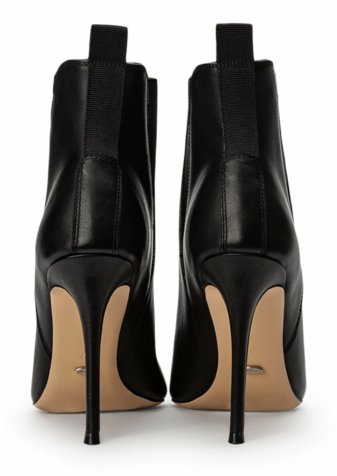 A black leather ankle boot for winter, yes please. Make way for the Laken black leather bootie – showcasing a slender stiletto heel, a sleek pointed toe and side gussets for the ultimate fit. Pair this heeled boot with fitted denim for a stylish go-to.