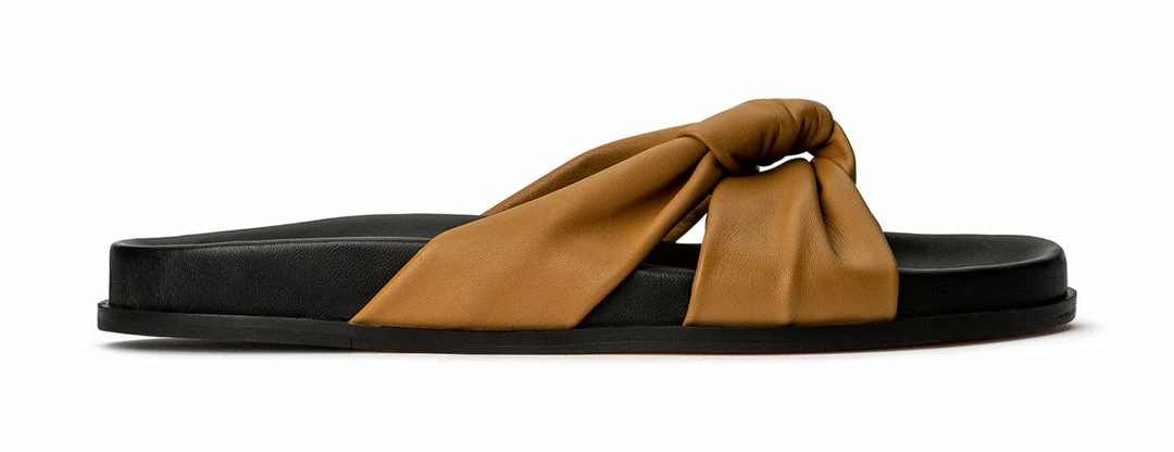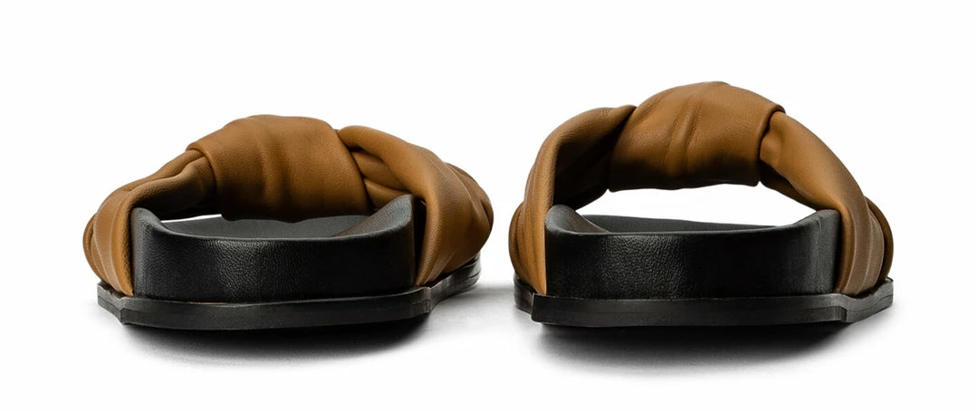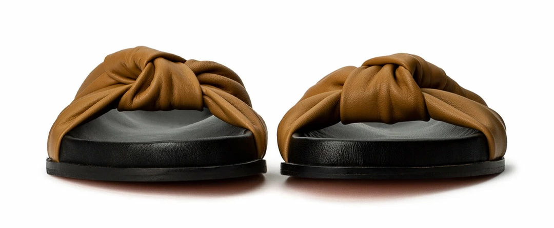 Slip straight into comfort with our Louvre slides for a modern take on comfort. Fitted out with criss-cross leather straps alongside a comfortable, wide foot-bed.