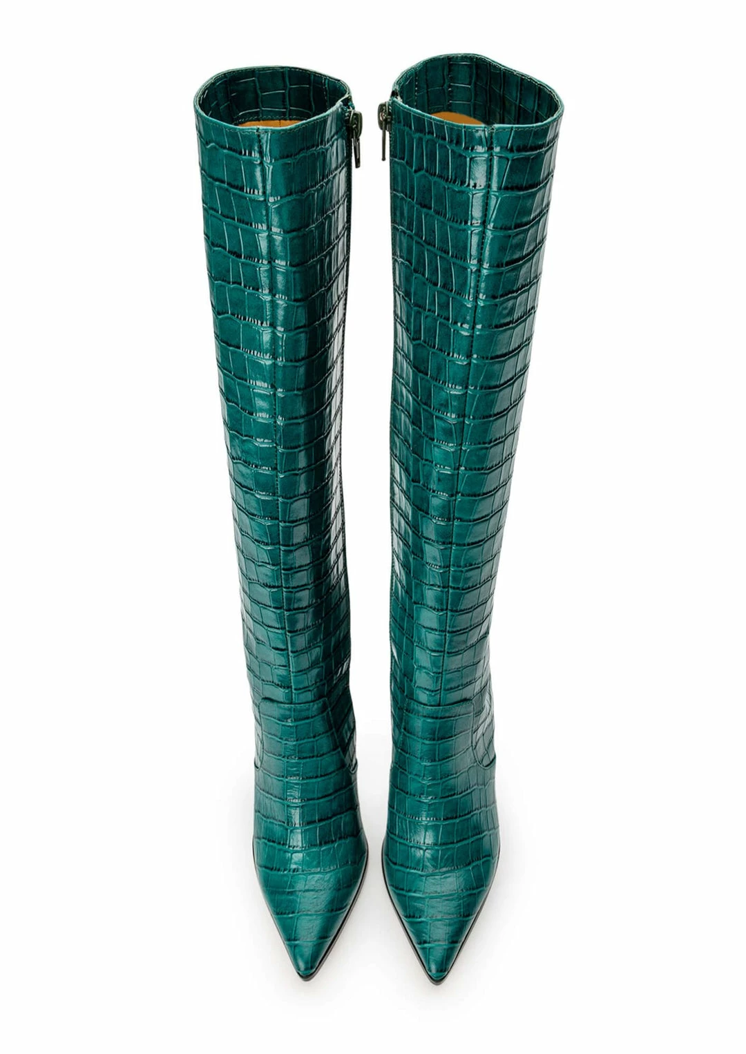 The green trend is here and it’s staying with the infamous Lucille knee-high boot in our newest green croc leather. With the classic block heel and sleek knee-high design, let this hue be your aquamarine dream this season.