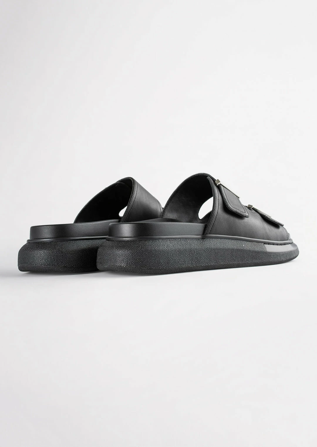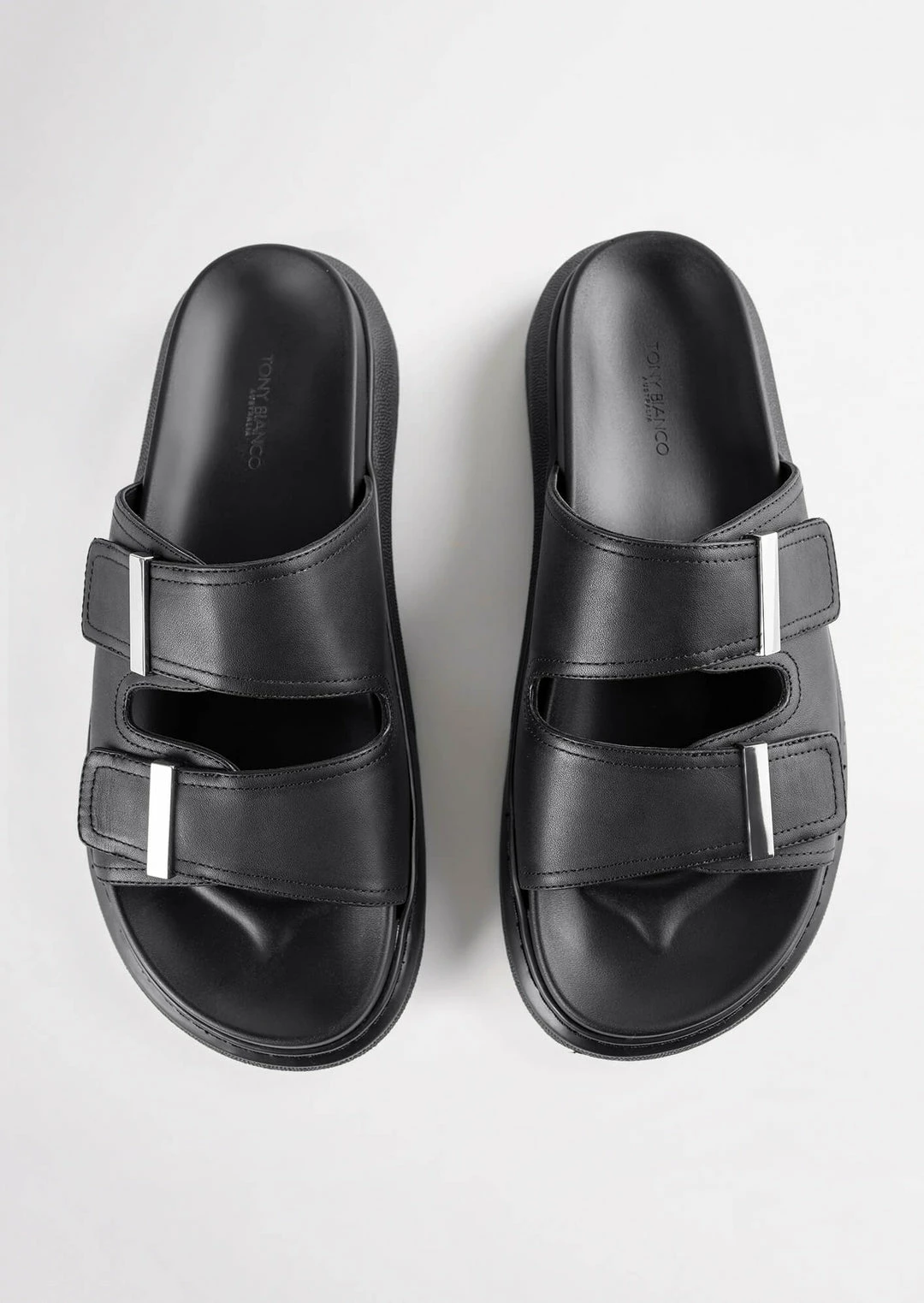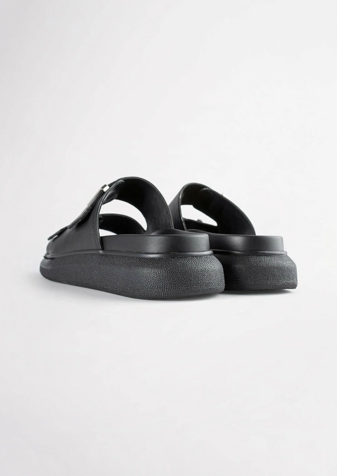 Slip into instant style with our Maja slide in black. Featuring two leather straps secured down by sleek silver hardware. Set on top of a platform sole, they’re a step up from your usual basic. Trust us, you’ll be wearing these all Summer long.
