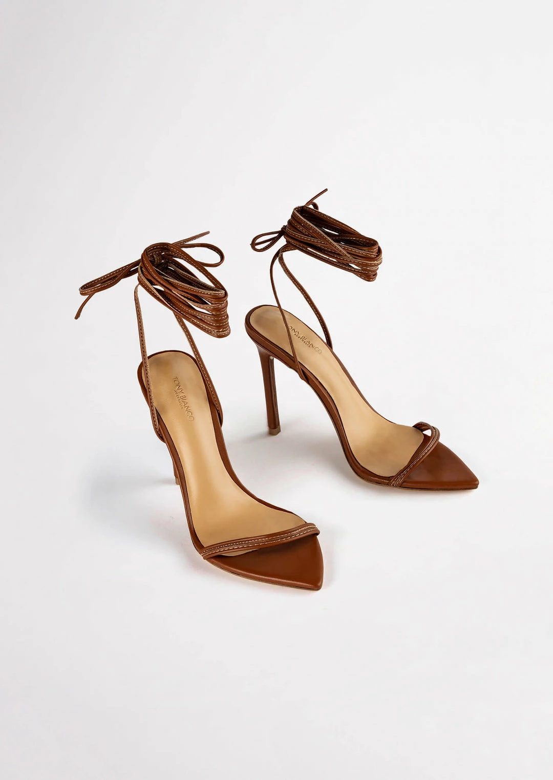 Set yourself up for some vibes with our Millie lace-up strappy heels in rust nappa. Showcasing slender straps across the foot and a wrap-around ankle design, this style features a pointed toe-shape and a thin stiletto heel and is finished with a leather upper and quality leather lining.