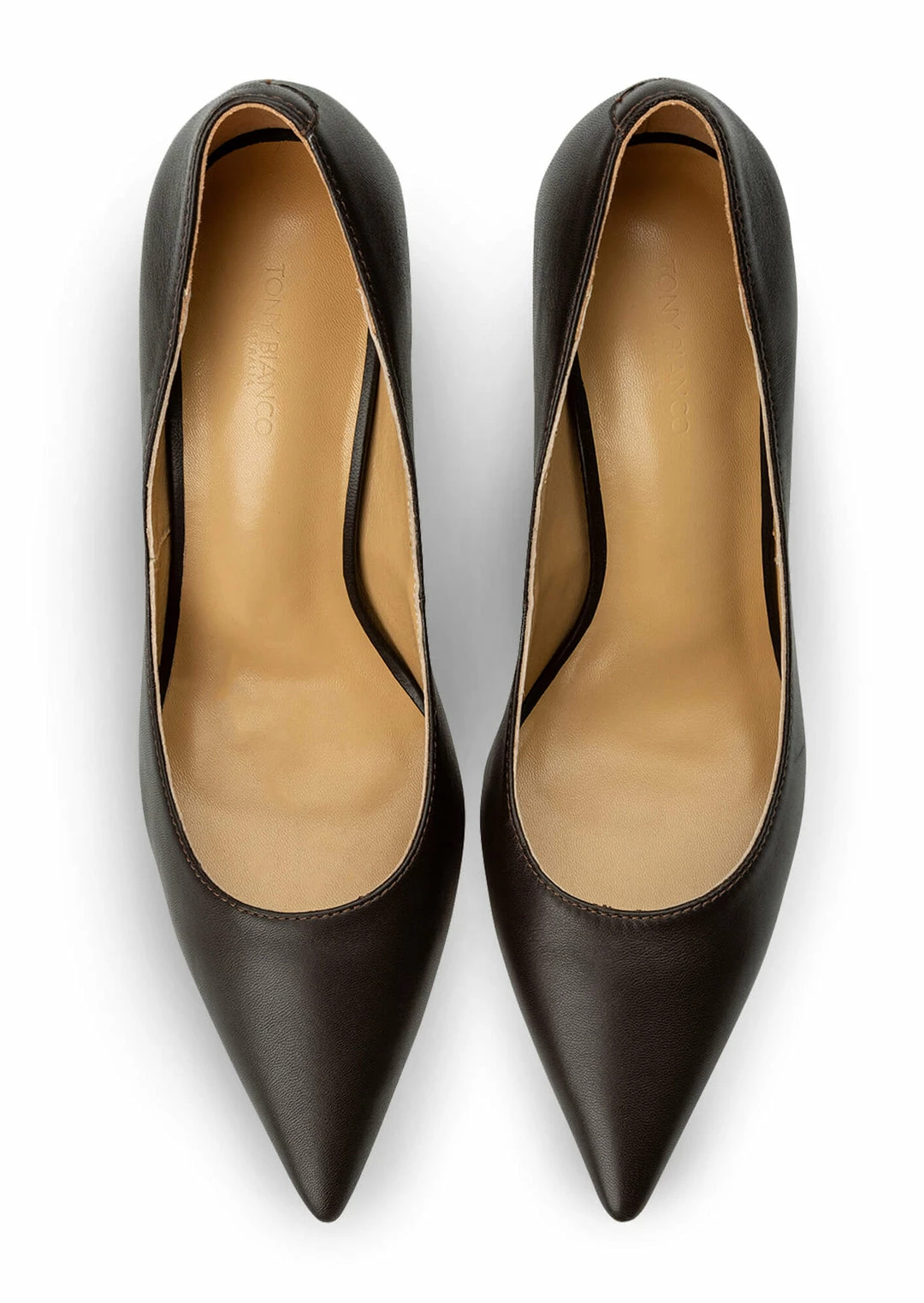 Perfect for every occasion are the Anja choc pump heels. Capturing the elegance of a classic pump, with a scooped upper to create a flattering silhouette and stiletto heel, she is a must have for your shoe-drobe collection.