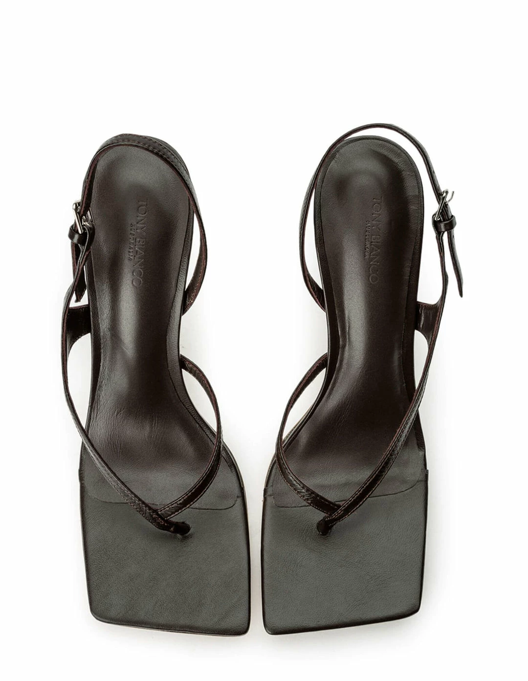 Barely there, the Lincoln brown strappy heels will be your go-to this party season. Featuring a squared toe-shape, a thin thong-strap upper and a silver-toned buckle. Dress up with a mini dress and matching red lipstick for the ultimate party look.