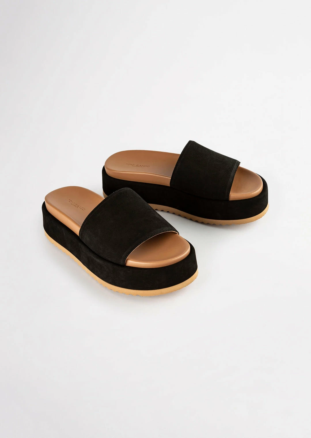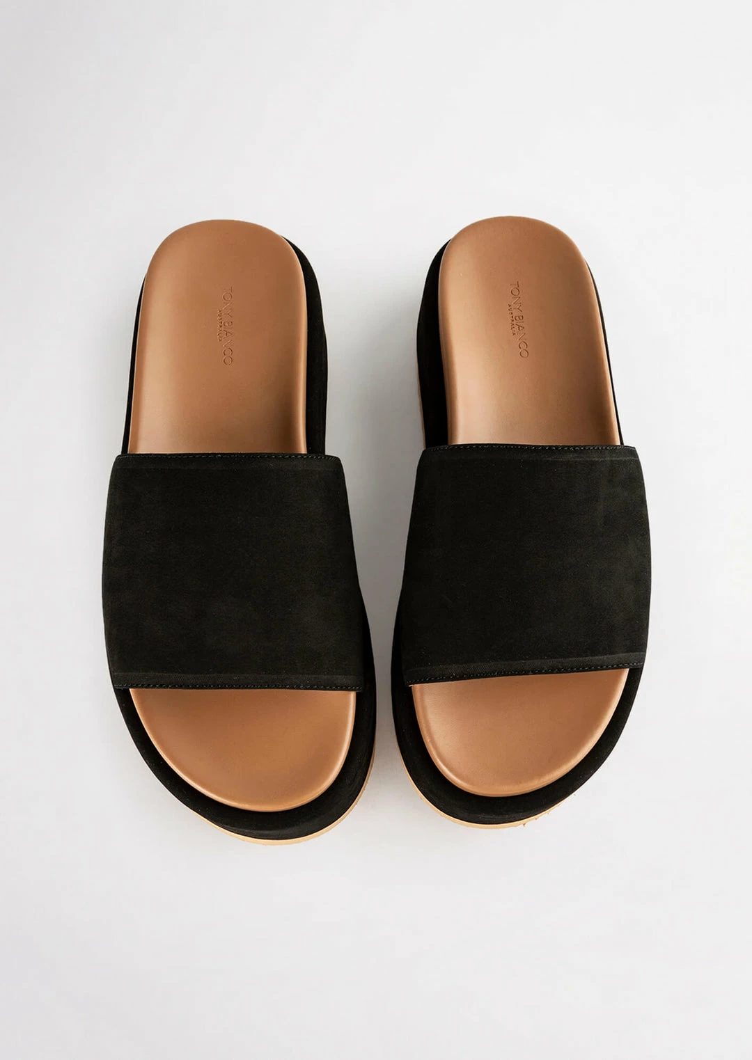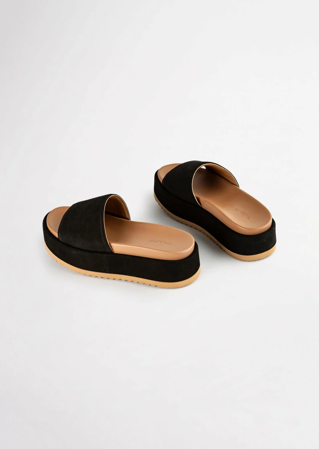 Slip straight into style with our Rio platform sandals. Showcasing a textured black phoenix leather upper with a smooth leather lining, a chunky platform sole and a comfortable rounded toe-shape. Pair with a breezy dress for a casual look.