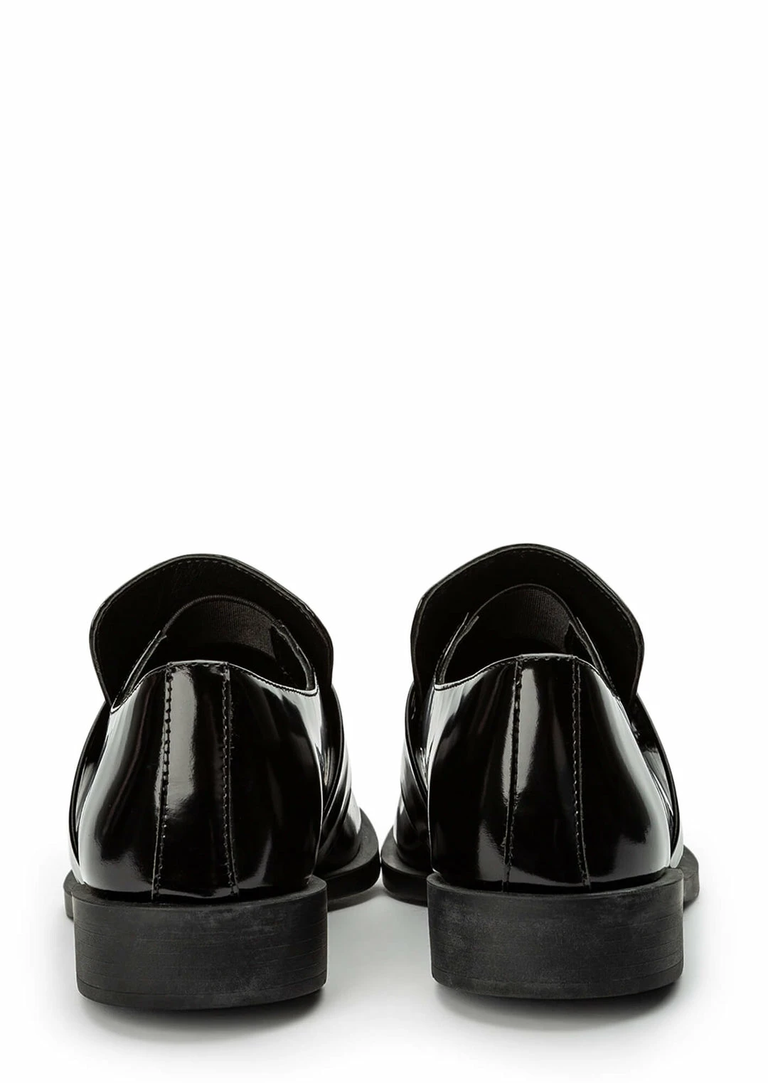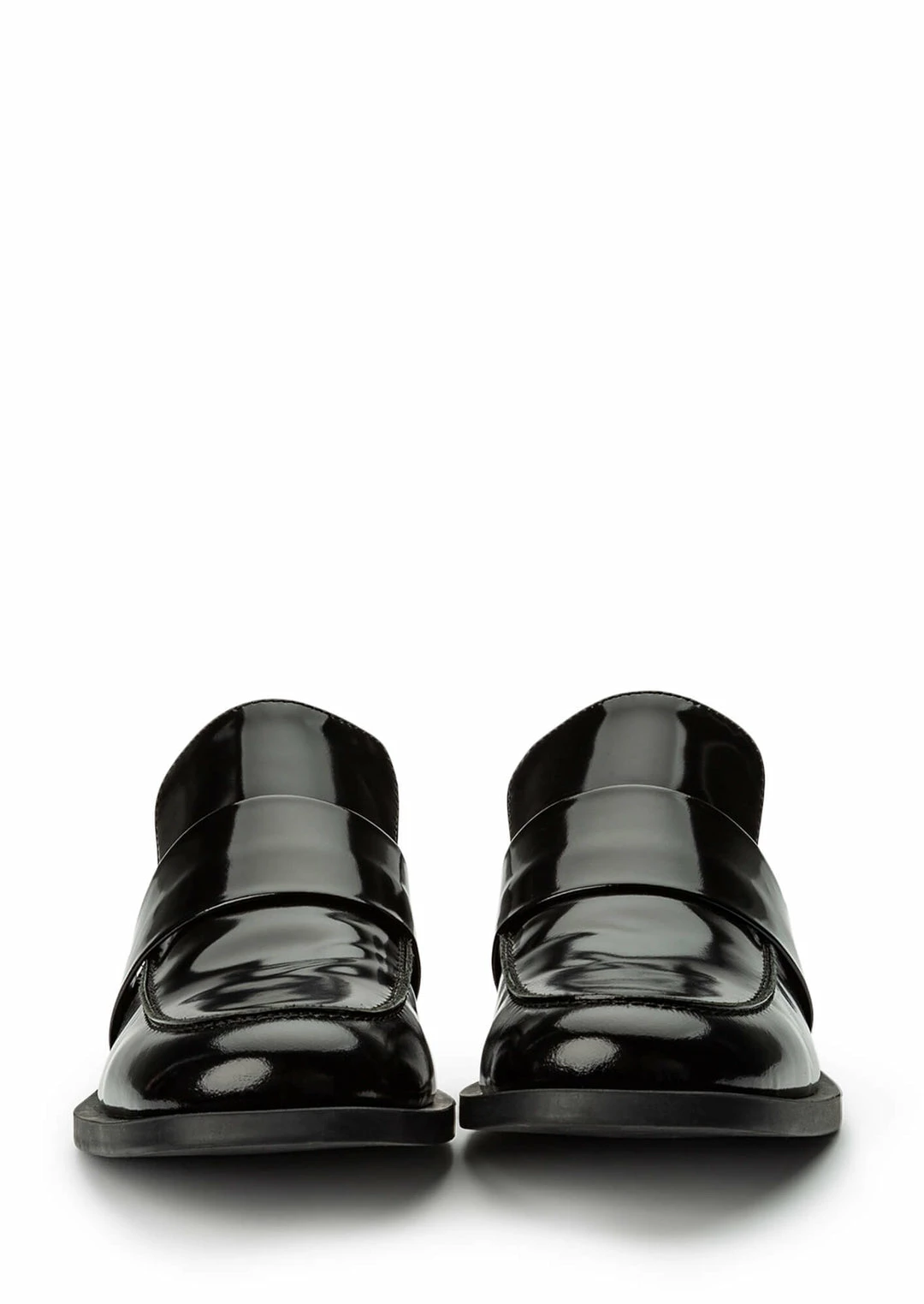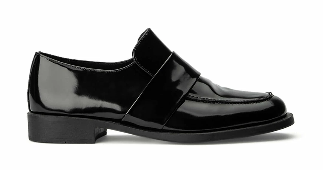Looking for the perfect black loafer? Meet Rovin – designed for work and play, this flat black shoe features an almond toe-shape with a high-cut vamp, subtle panelled detailing with a pared back rubber sole.