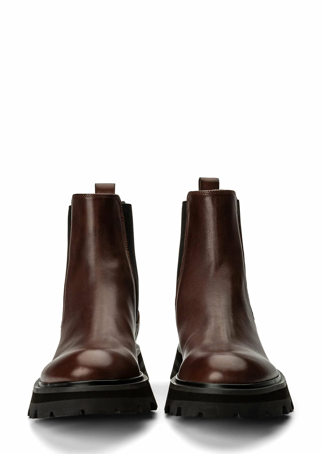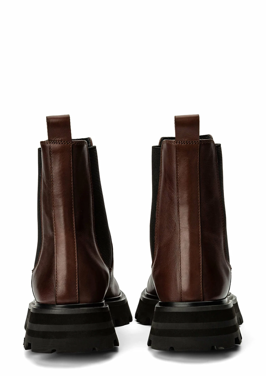 True to form, the lug-sole boot trend is here to stay with Albie. This leather ankle boot has the stretch of a fabric gusset opening to keep it casual, yet an elevated design that’s high in demand this season.