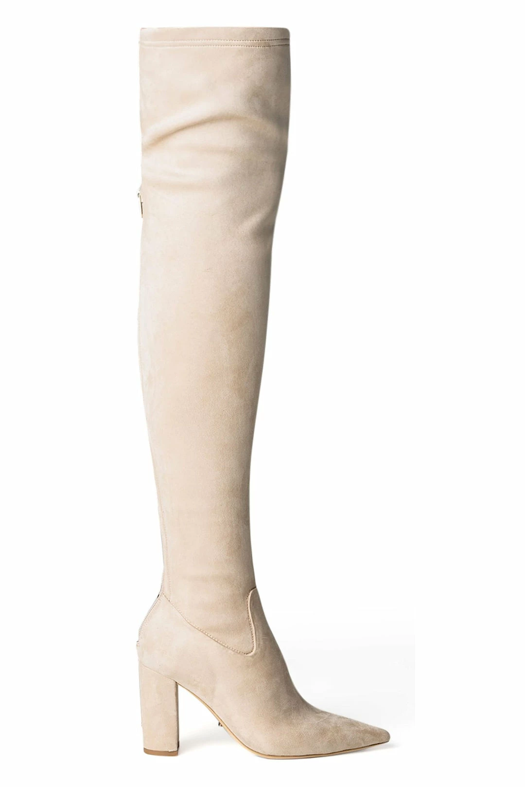 Reach new heights in the Estella over-the-knee stretch boots. This elevated thigh-high style dons a pointed toe, block heel & stretch calf to make these a chic addition to your collection. Pair with a mini or your favourite jeans for the ultimate tran-seasonal style.