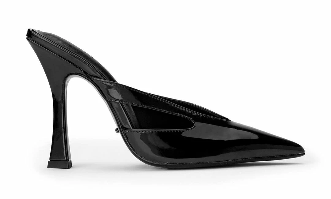 Want something classic with a subtle twist? Let us introduce you to the Princess heeled mules. Donning a black patent leather with a sleek stiletto heel, this style is sure to make a statement this season.
