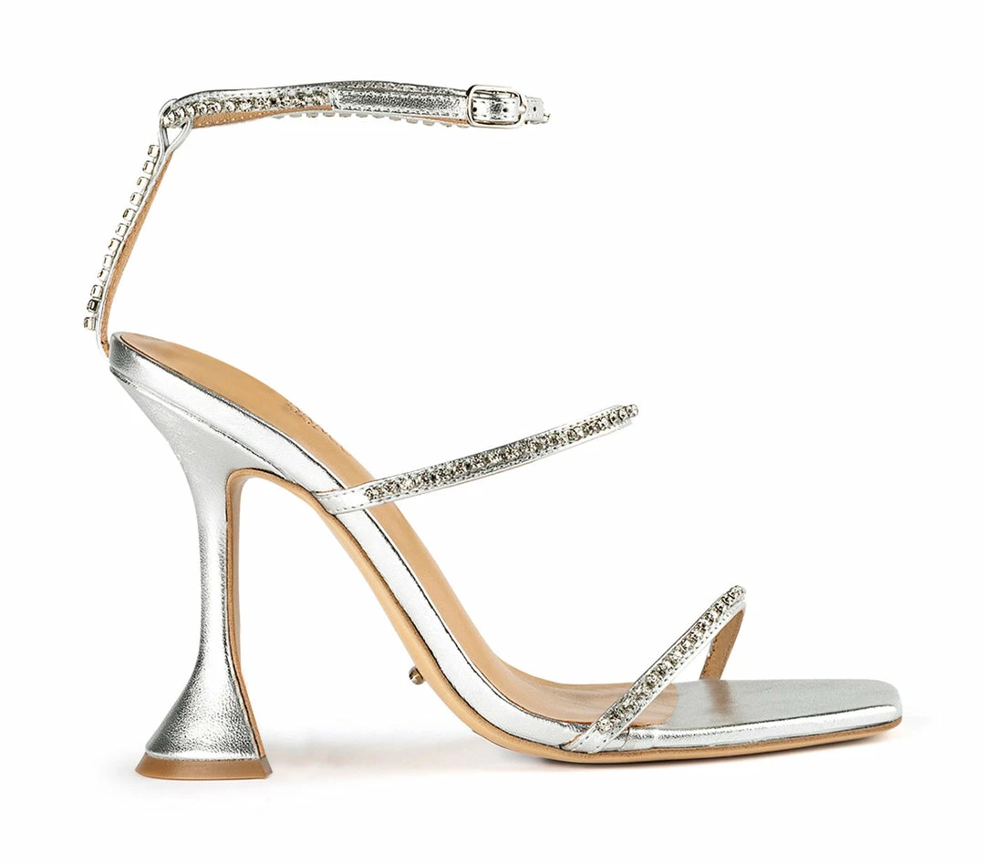 Shy by name, but not by nature. Our Shy silver strappy heels feature slender foot-framing straps lined with diamente detailing, an on-trend square toe shape and a flared hourglass shaped heel. Finished with a secure ankle buckle, pair with any outfit for the perfect finishing touch.